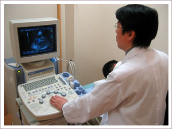 心臓、腹部、頚部血管、甲状腺などの疾患の診断に用います。 カラードップラーを用いることで、心臓の内部や血管内の血流を測定することがで きます。 |